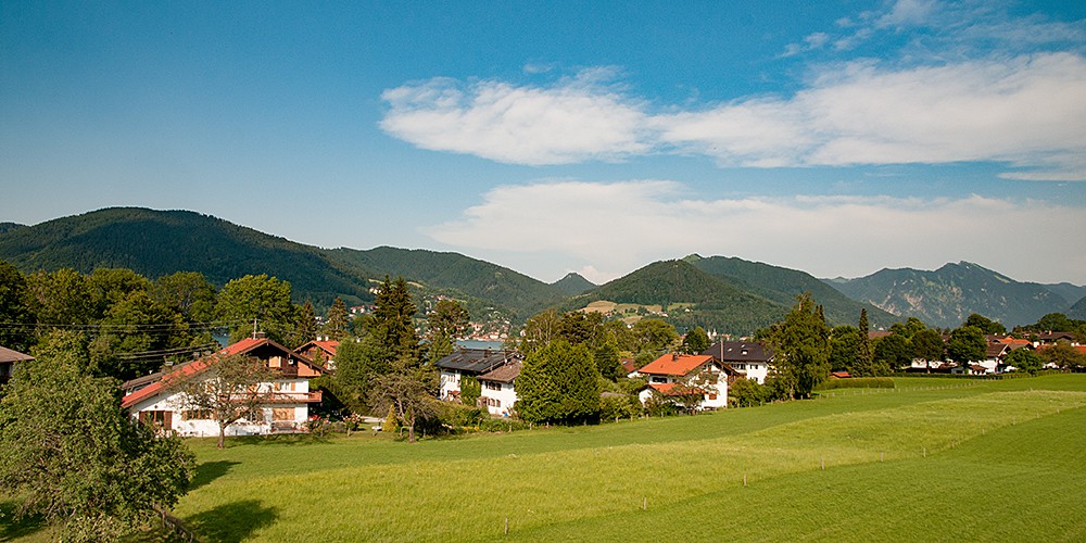 1 Wohnzimmer mit gemütlicher Sitzecke - Sofa, Sessel, Couchtisch, Flachbildfernseher. Einbau-Küche mit Eßplatz. 1 Schlafzimmer mit Doppelbett. Flur mit Garderobe, Balkon mit Tisch und Stühlen und wunderbarem Ausblick auf das Tegernseer Tal.